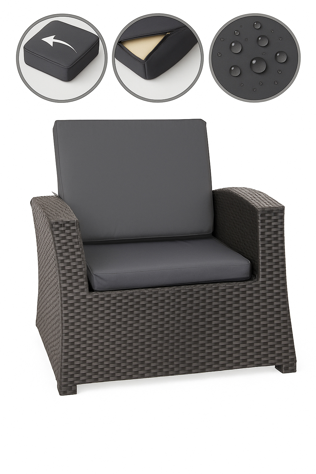 Bezüge und Kissen sind aus hochwertigem, abriebfestem und pflegeleichtem Stoff genäht.