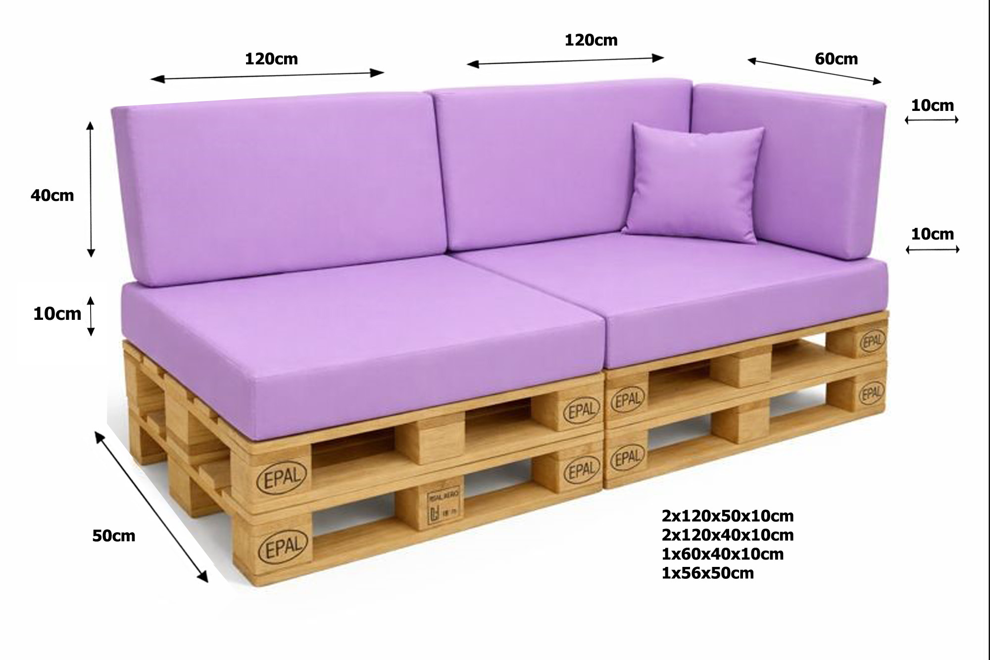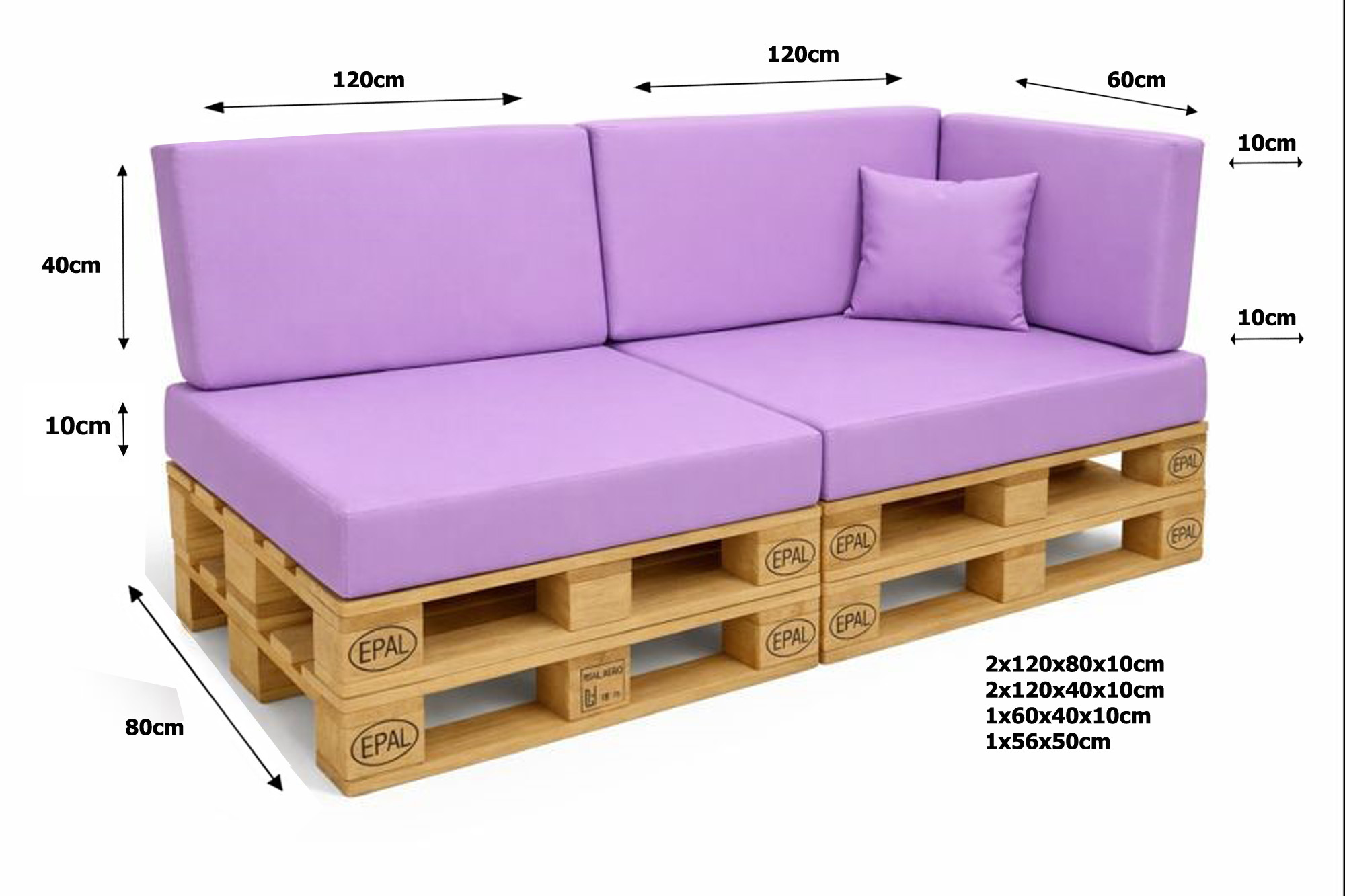 Maße der Palettenkissen (Beispiele)
