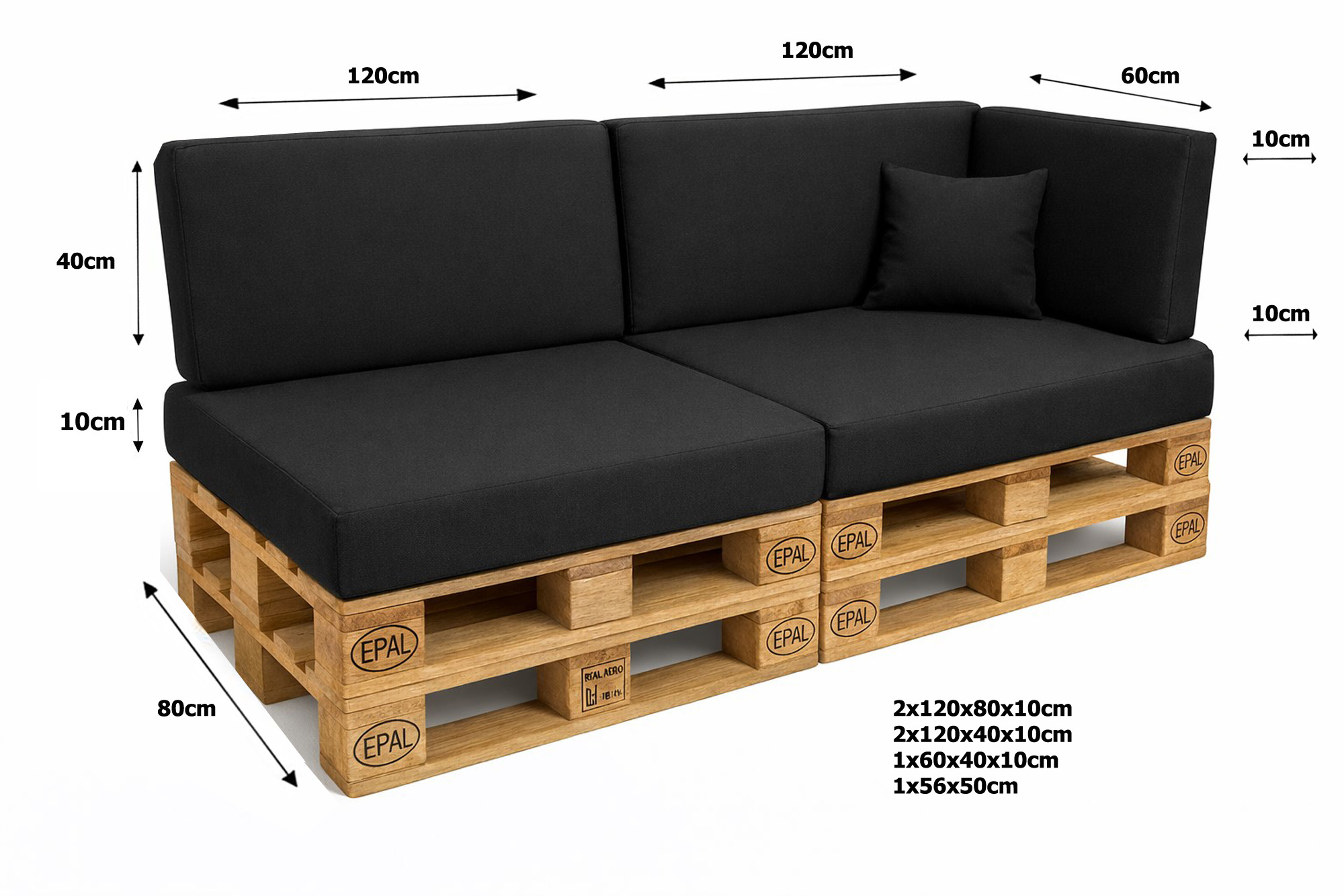 Jedes Kissen im Set ist 10 cm dick und garantiert so stabilen Sitzkomfort und optimale Lendenwirbelstütze. Diese Lösung ist ideal für alle, die keine Kompromisse eingehen wollen: Palettenkissen müssen weich, geschmeidig und langlebig sein.