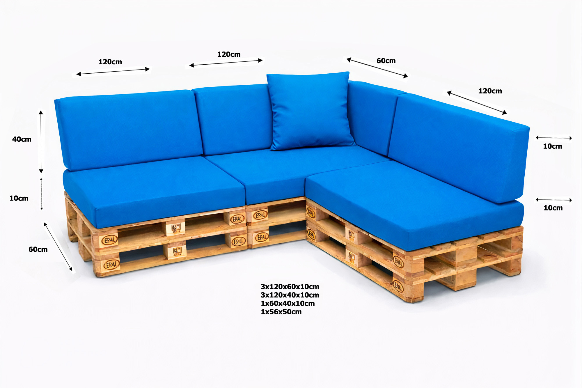 Maße der Palettenkissen (Beispiele)