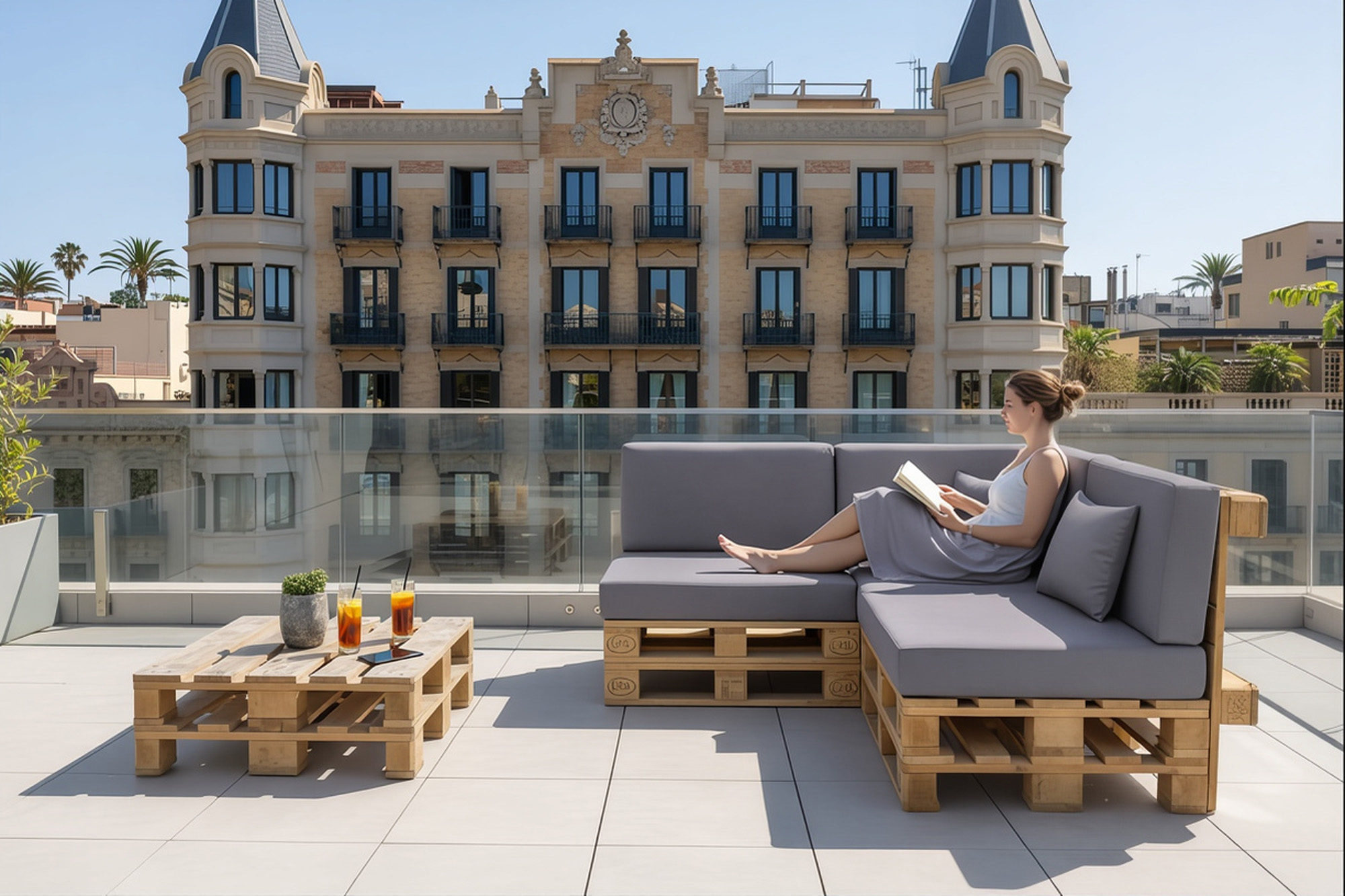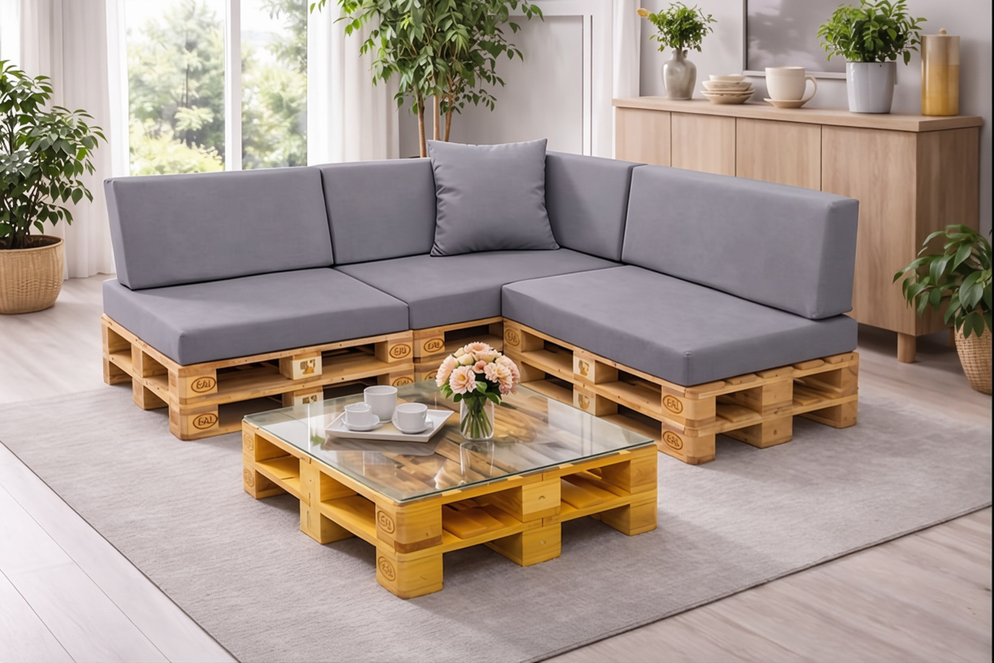Mit nur einem Set bauen Sie im Handumdrehen ein bequemes Sofa oder Ecksofa aus Europaletten – ganz ohne Aufpreis.