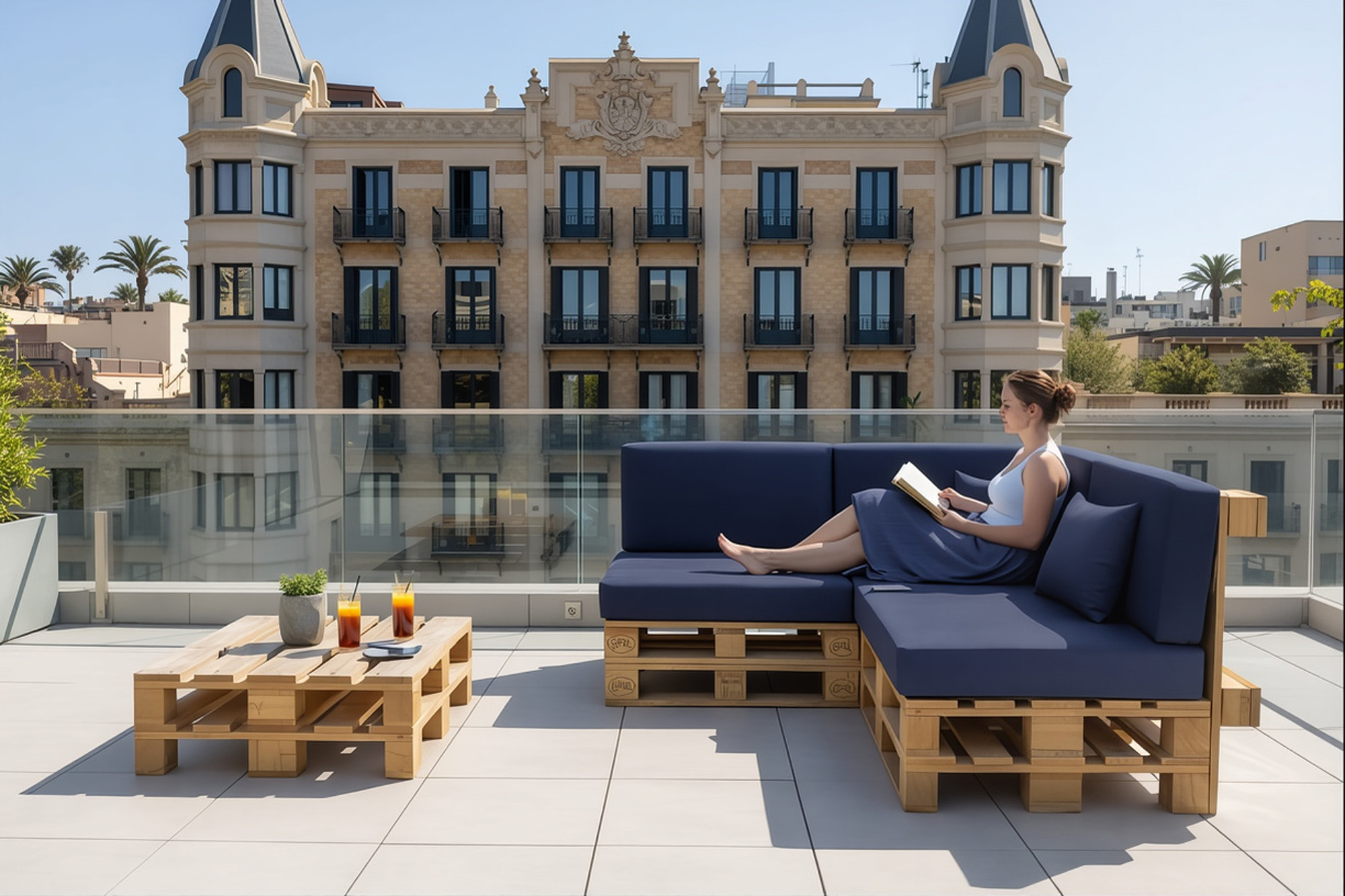 Mit nur einem Set bauen Sie im Handumdrehen ein bequemes Sofa oder Ecksofa aus Europaletten – ganz ohne Aufpreis.