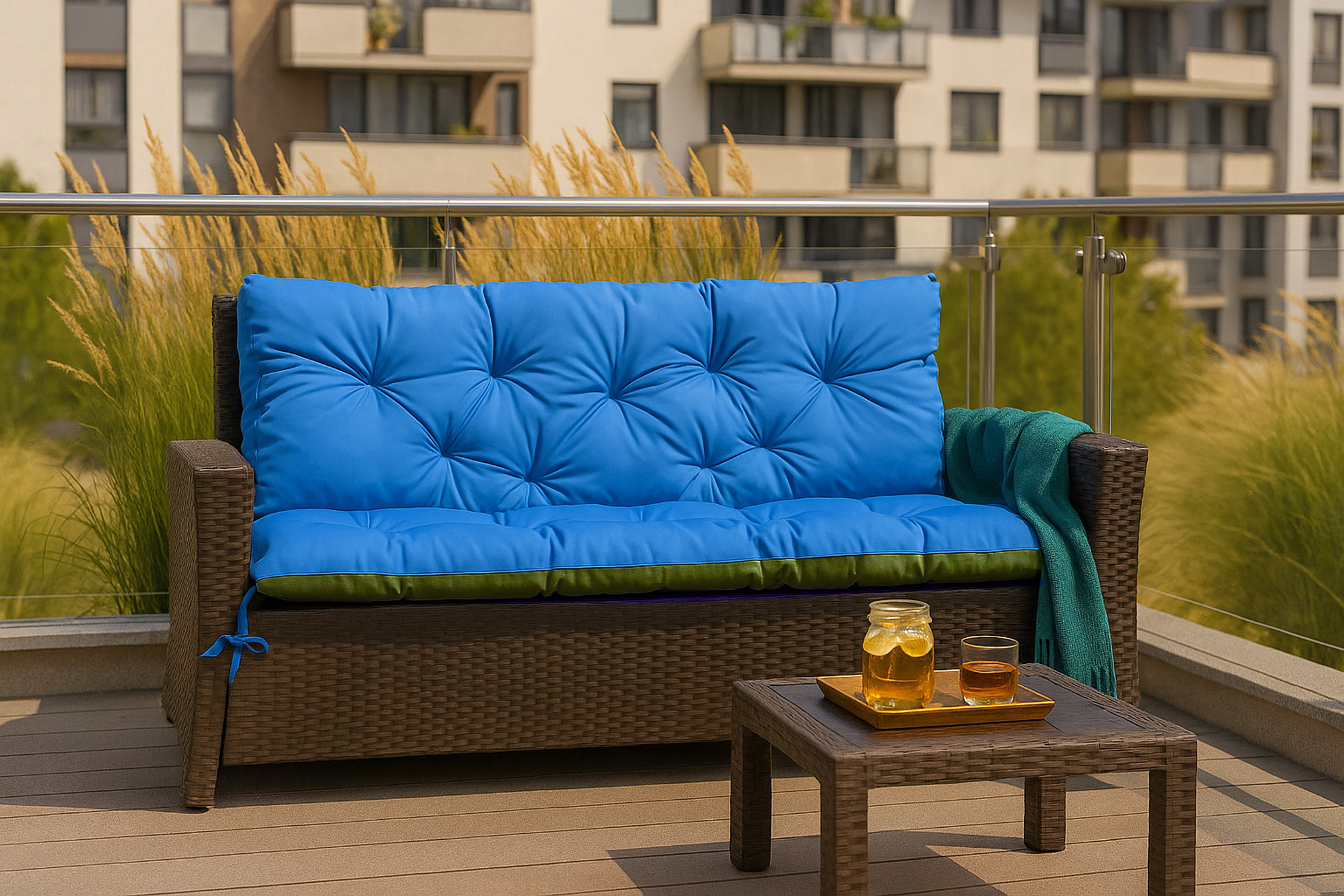 COUSSIN POUR CANAPÉ DE JARDIN ROTIN: Bleu