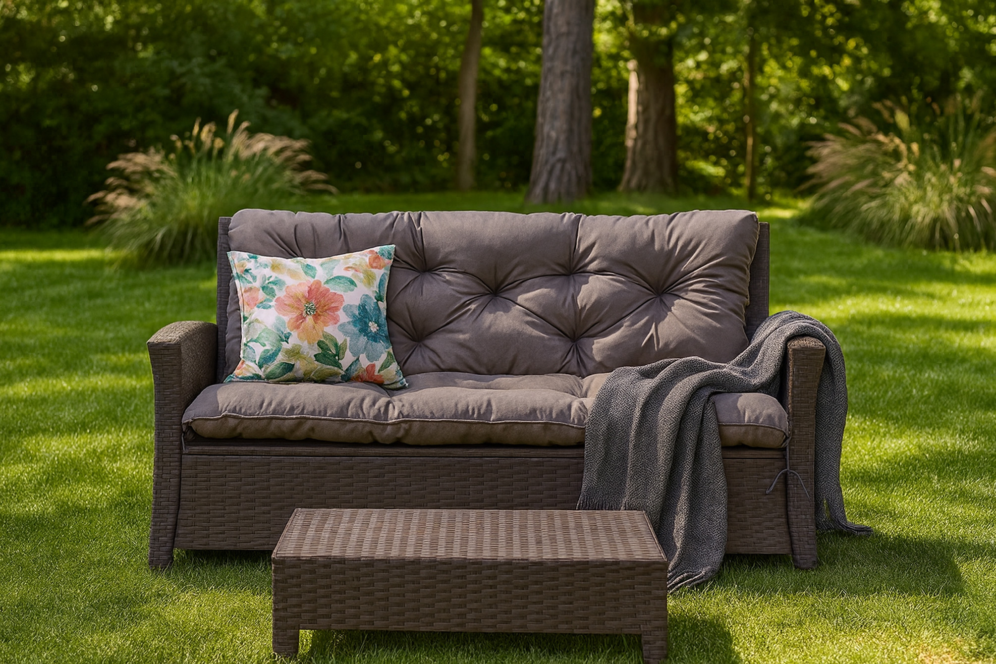 COUSSIN POUR CANAPÉ DE JARDIN ROTIN: Gris