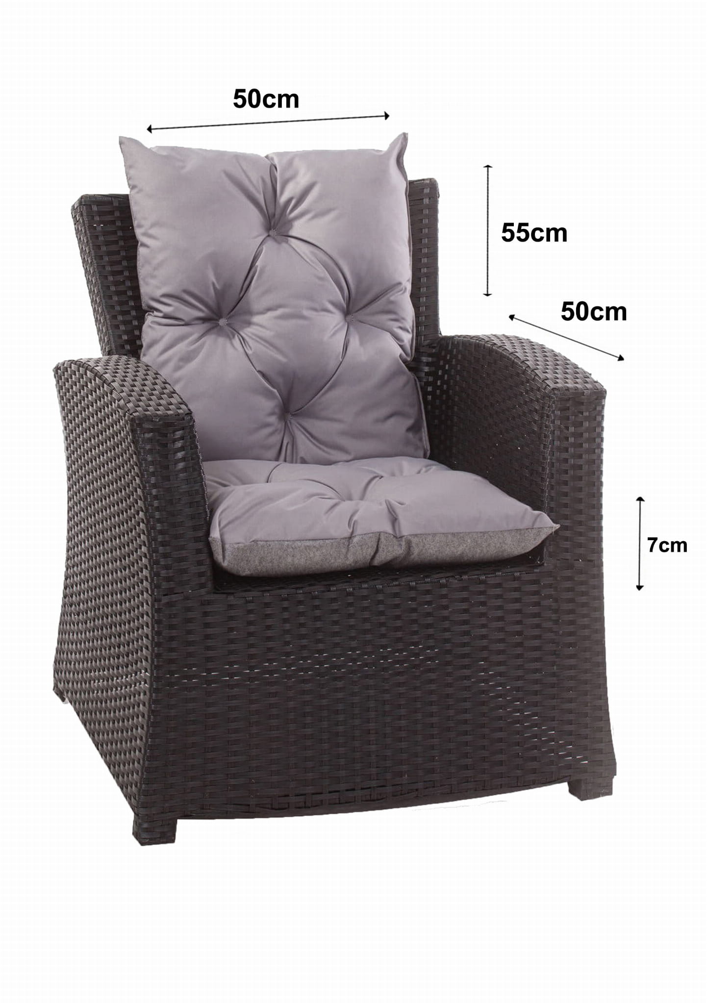 L'épaisseur du coussin pour le fauteuil et la chaise est de 10cm.