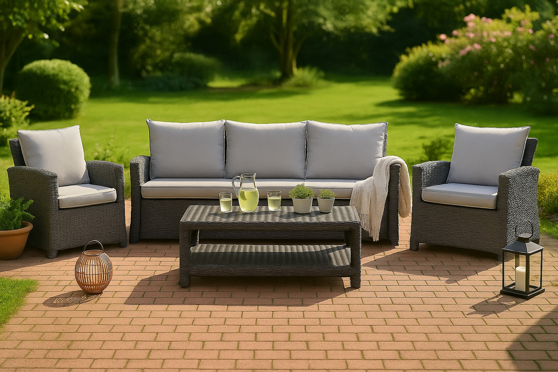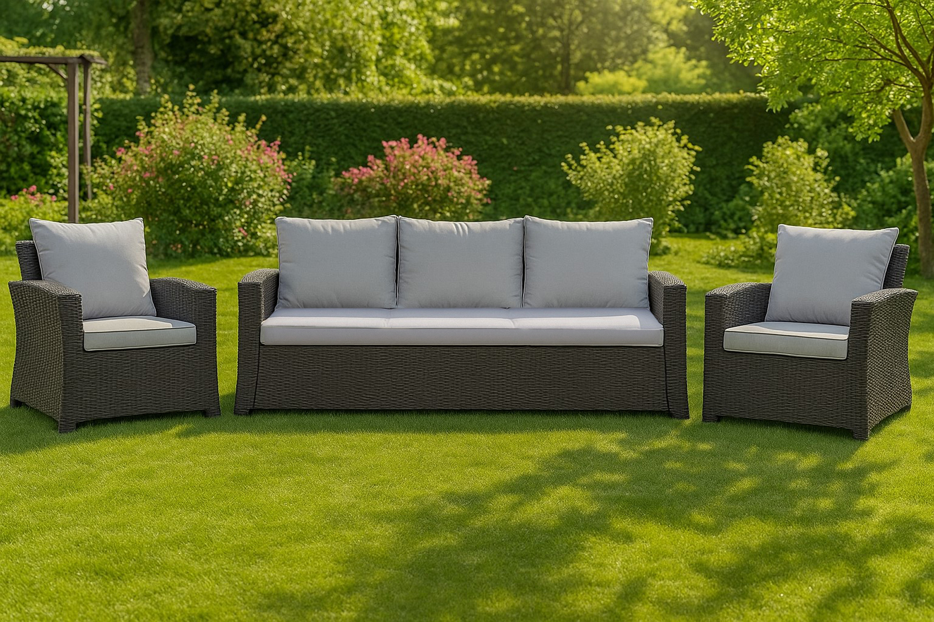 Coussins de canapé de jardin en résine tressée Gris