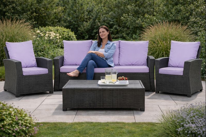 Coussins pour canapé de jardin 4-5 personnes - rotin: Violet Clair