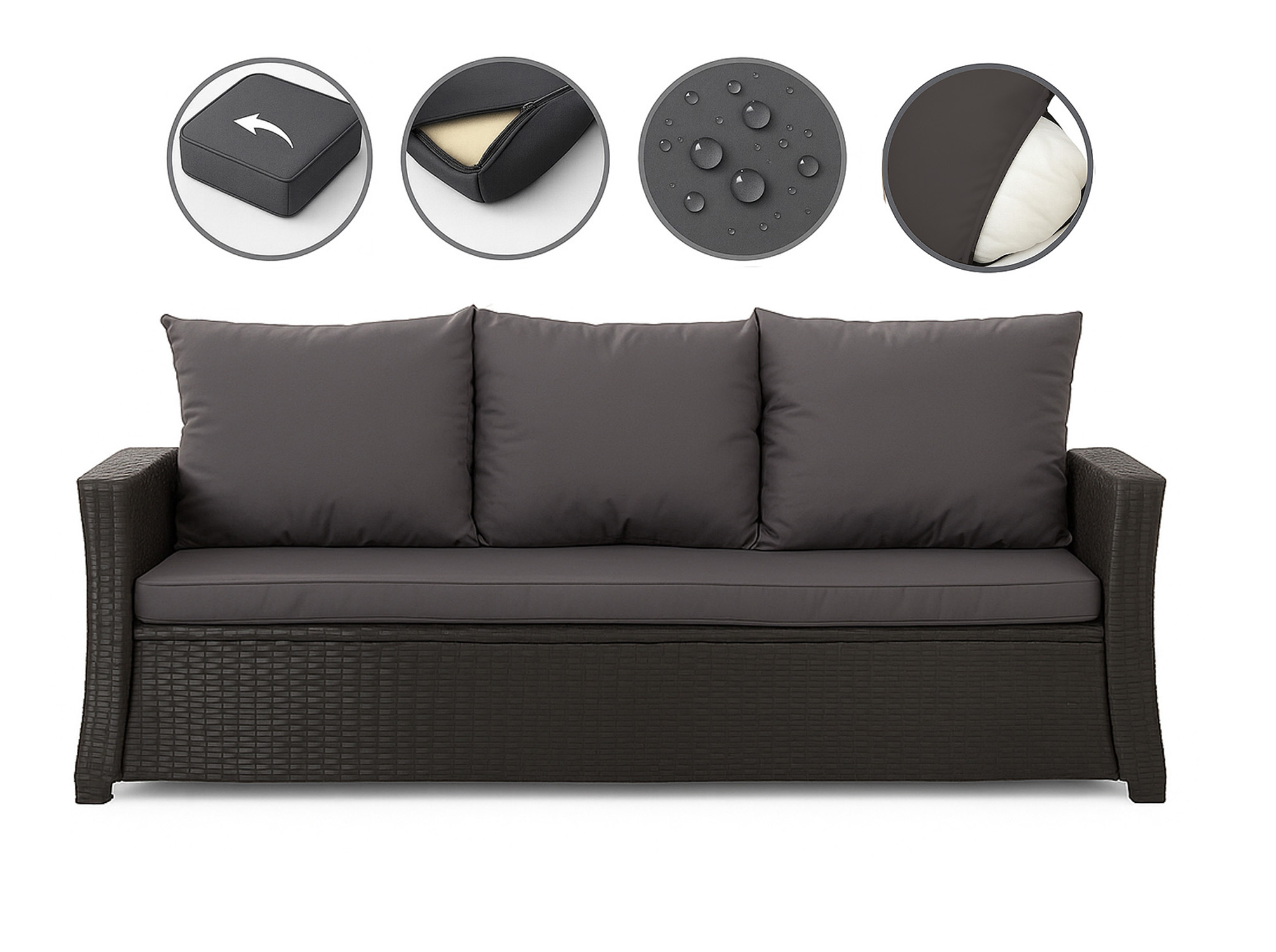 CUSCINI PER DIVANO DA GIARDINO 2-3 POSTI: Grigio scuro