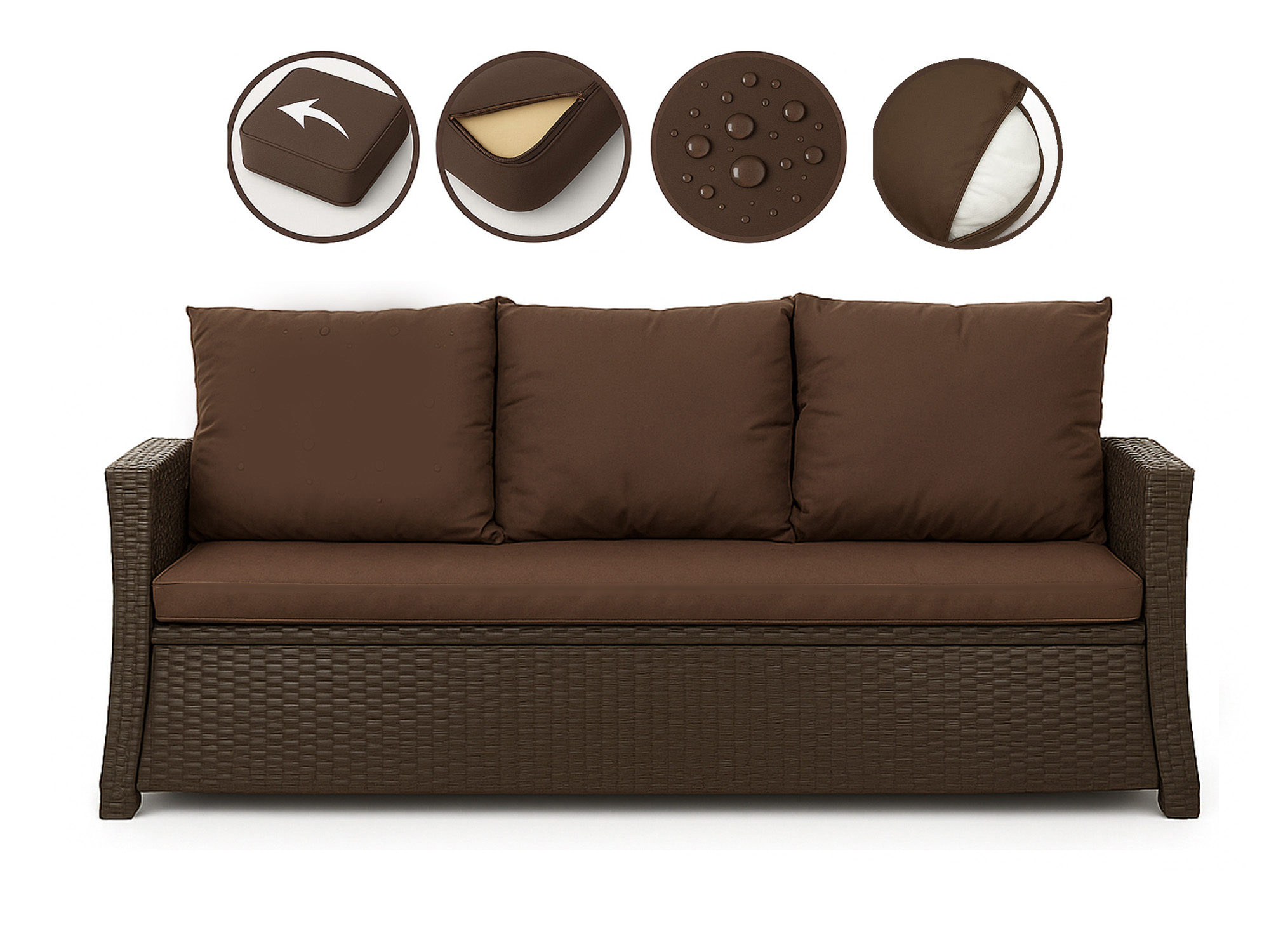 CUSCINI PER DIVANO DA GIARDINO 2-3 POSTI Marrone