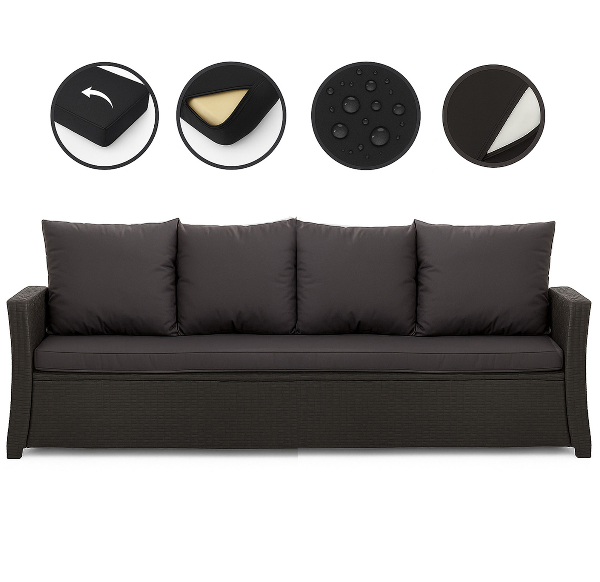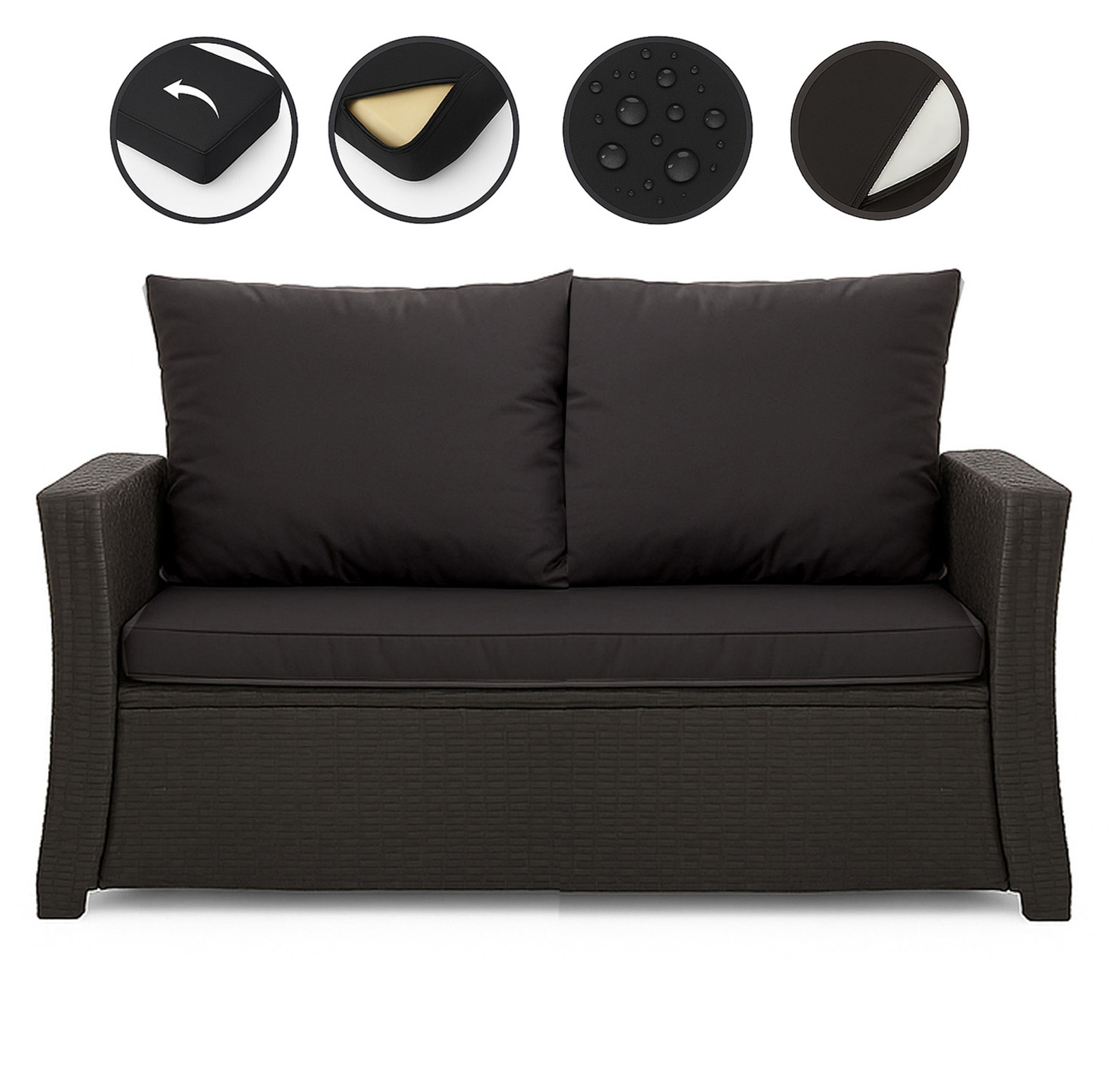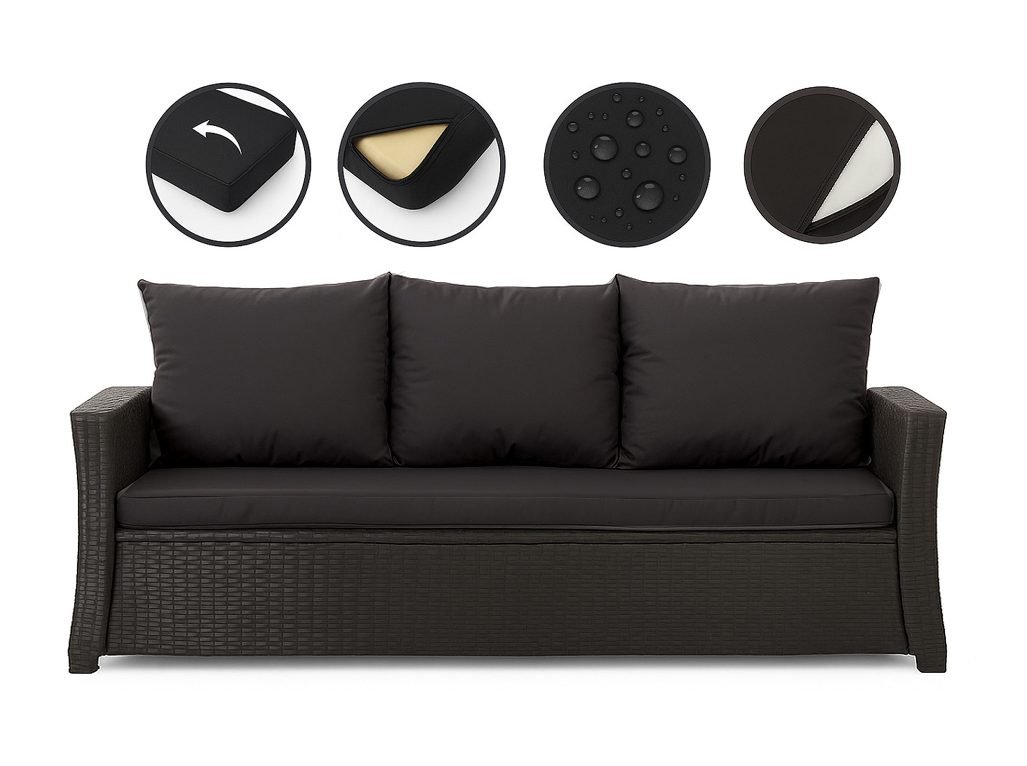CUSCINI PER DIVANO DA GIARDINO 2-3 POSTI Nero