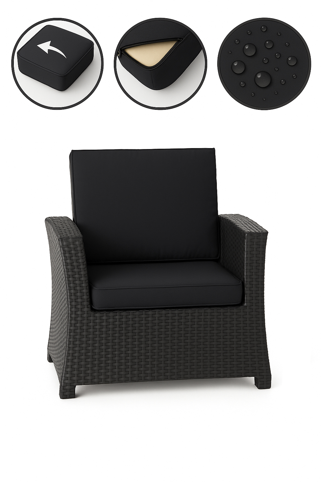 • I cuscini del sedile sono dotati di cerniera per una rapida sostituzione o pulizia.