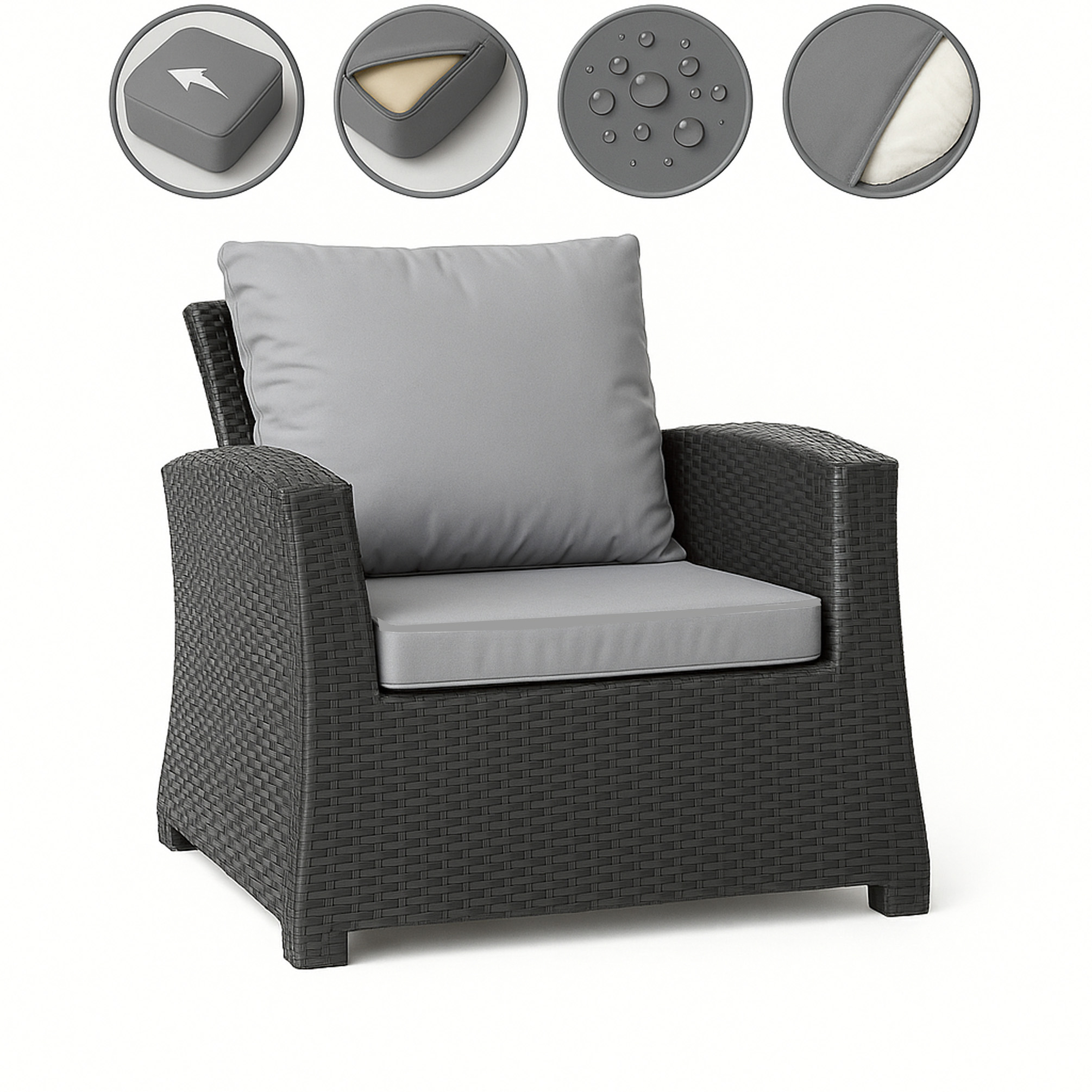 • I cuscini del sedile sono dotati di cerniera per una rapida sostituzione o pulizia.