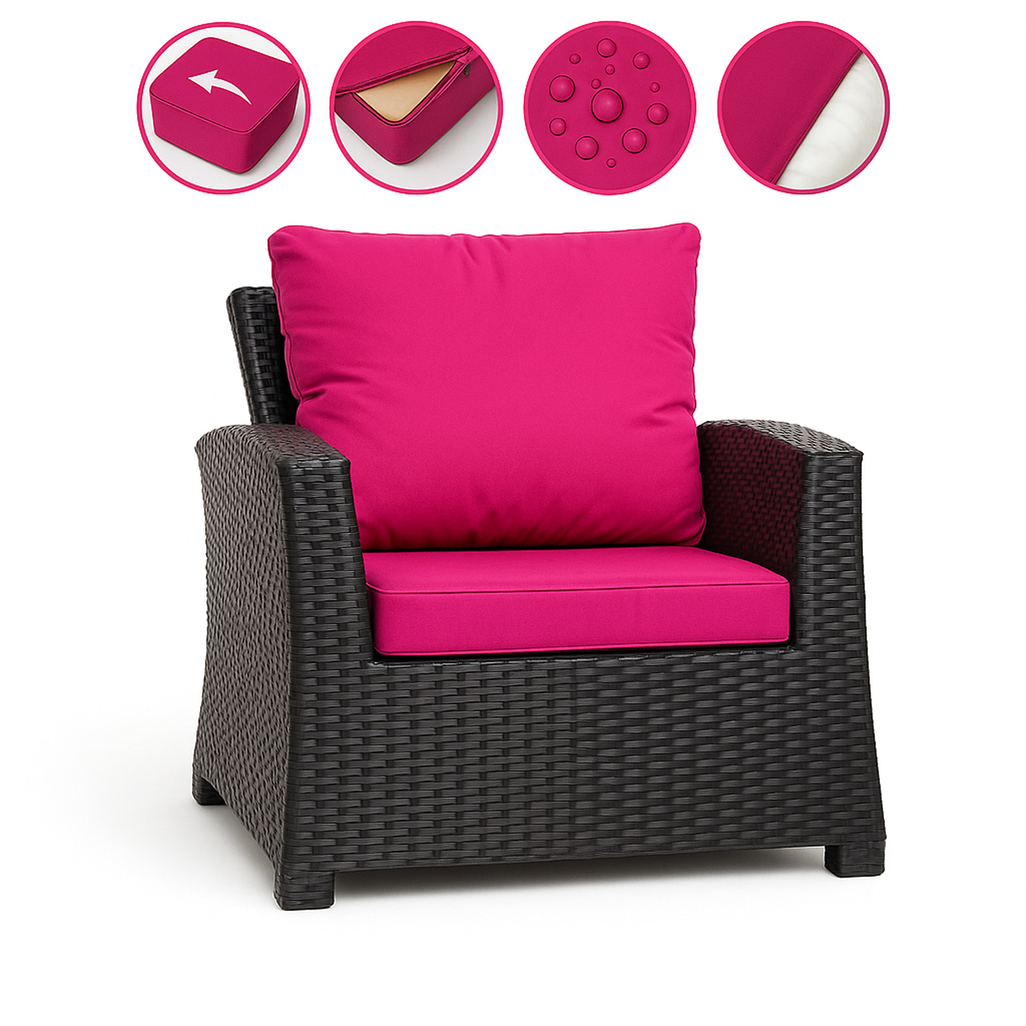 • I cuscini del sedile sono dotati di cerniera per una rapida sostituzione o pulizia.