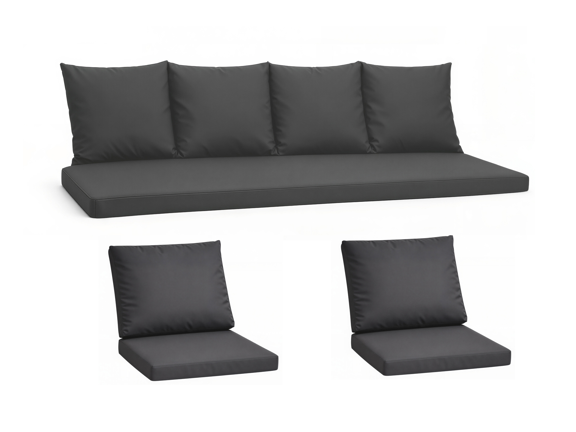 Zestaw poduszek dostępny jest w wariancie dla 4 lub 5 osób, z możliwością wyboru długości i szerokości poduszek kanapowych, co pozwala idealnie dopasować komplet do posiadanych mebli.