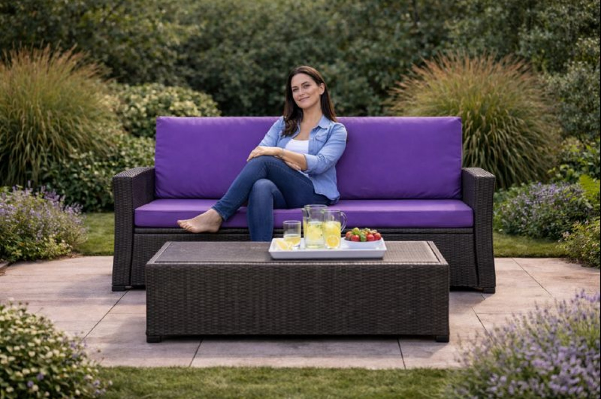 Poduszki na sofę ogrodową technorattanową 2-3-osobową: Fiolet